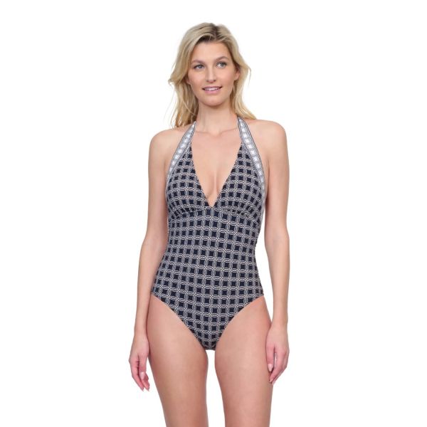 Gottex Golden Chic V Neck Halter One Piece Swimsuit